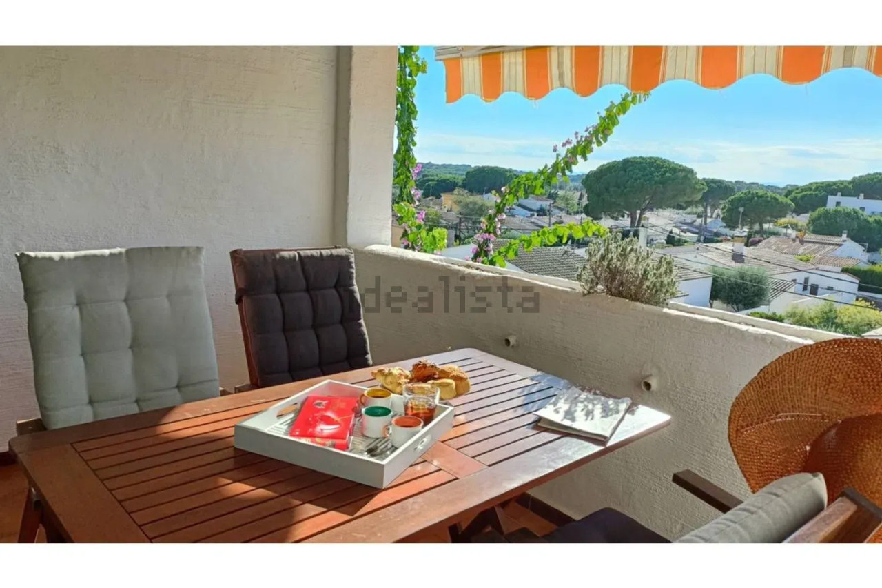Dúplex cerca del puerto y a 600 metros de la playa de Riells. Con 84m² de construcción, a nivel de entrada encontramos la cocina abierta al comedor y a la sala de estar conectada a una terraza cubierta que da a la piscina, también encontramos un baño de cortesía. Subiendo las escaleras llegamos a la zona de noche donde hay un dormitorio individual, dos dobles (uno de ellos con acceso a una segunda terraza) y un baño completo.Es un ático en un segundo nivel de altura, sin ascensor pero con mucha luz, los suelos de gres, los cerramientos de madera y aluminio y con aire acondicionado en la zona de los dormitorios. Incluye dos plazas de aparcamiento en el exterior.