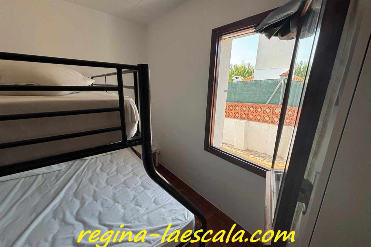 Una agradable casa, todo planta baja con un altillo abierto como tercer dormitorio. Salón-Comedor-Cocina y salida a la terraza. Un baño completo con ducha y dos dormitorios. Con un aparato de aire caliente y frío. Con espacio privado para aparcar un coche. Una terraza solarium. La piscina se encuentra en la parte posterior de la casa. Con un terreno cerrado. Ubicada en una zona residencial tranquila y a la vez muy próxima a los comercios, zonas verdes y de bosques. Ideal para paseos o salidas con bicicleta.Fotos del piso